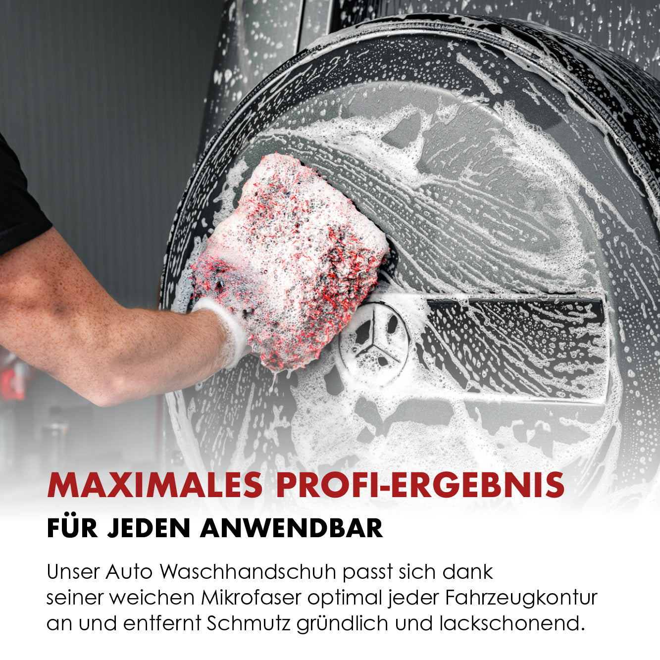 Nuestro guante de lavado para coche ha sido desarrollado para las más altas exigencias: suave con la pintura, eficiente en el uso y resistente a largo plazo. Gracias a la combinación de microfibra de alta calidad, un diseño inteligente y el máximo control, es la primera elección para profesionales que valoran resultados perfectos.