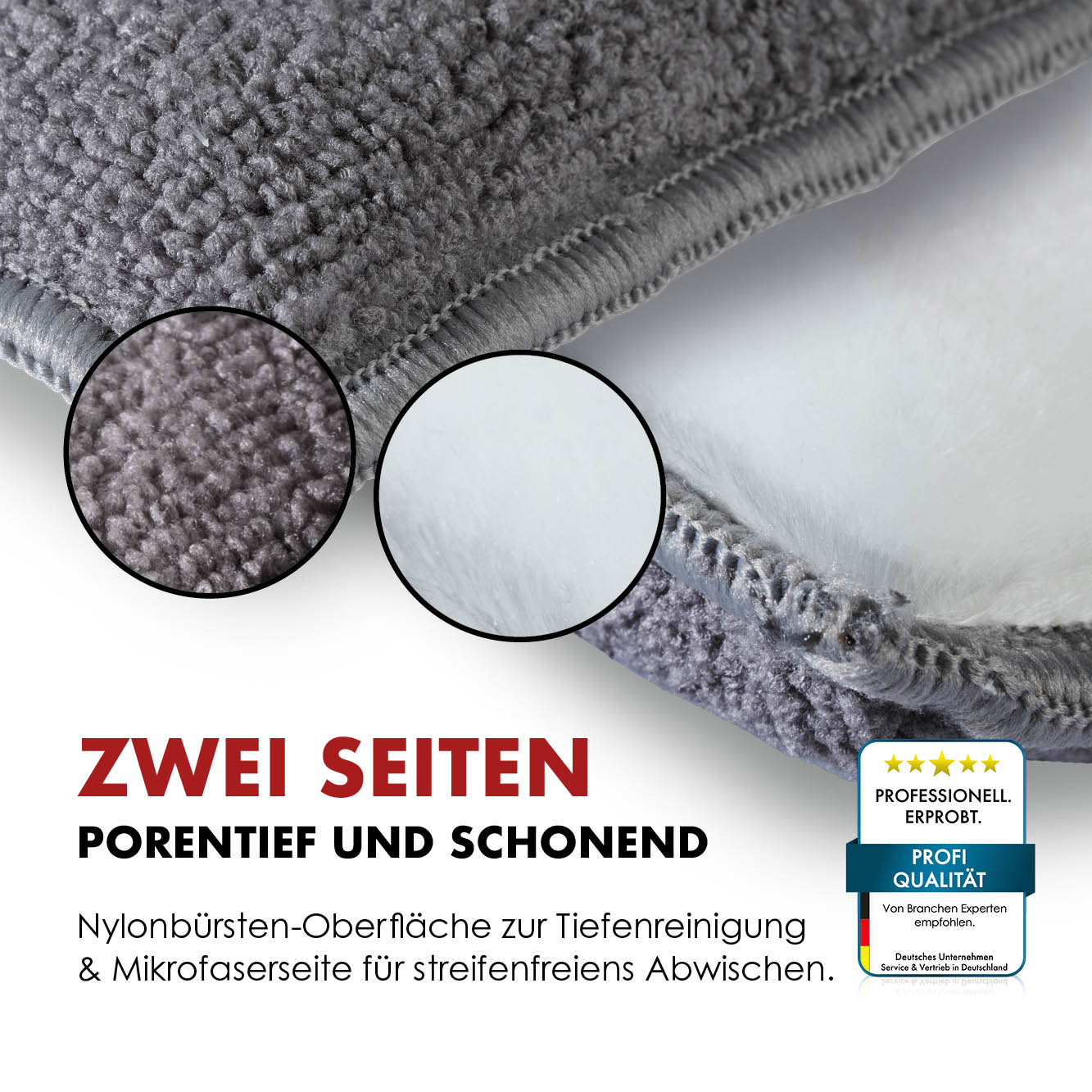 Mit den speziellen Scrub-Bürsten entfernst du selbst tiefsitzenden Schmutz gründlich und schonend, ohne die Oberfläche anzugreifen. Für schnelle, saubere Ergebnisse in einem Arbeitsschritt. Kein Wechsel, kein Aufwand – einfach reinigen und mit einem Tuch abwischen.